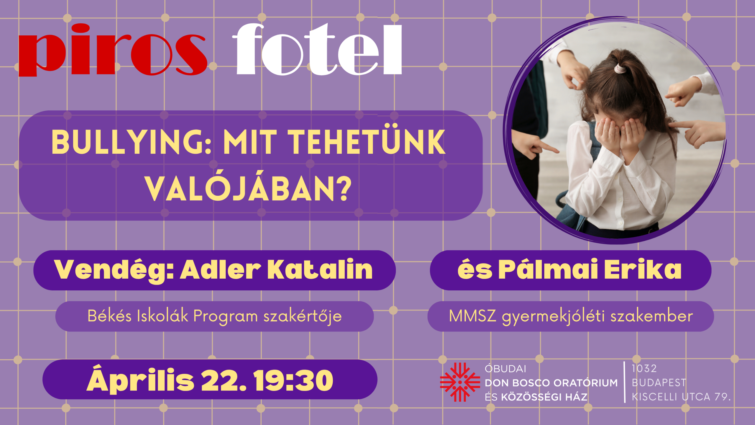 Tovább… 🔴 PIROS FOTEL – Bullying: Mit tehetünk valójában? – ÁPRILIS 22. 19:30
